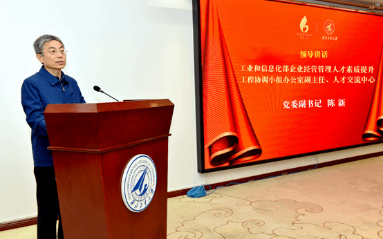 最后,工业和信息化部企业经营管理人才素质提升工程协调小组办公室副主任、人才交流中心党委副书记陈新讲话,向新加入领军大家庭的企业家朋友们表示欢迎,向即将结业的领军学员们表示祝贺,并介绍了中小企业经营管理领军人才培训项目的培训体系、丰硕成果和重要意义。希望同学们静下心来学习,致力学有所思、思有所得、得有所用、用有所成,坚持走专精特新发展道路,激发高质量发展的内生动力;认真履行社会责任,弘扬优秀企业家精神,树立家国情怀,将“公诚勇毅”的西工大校训融入中小企业发展中。