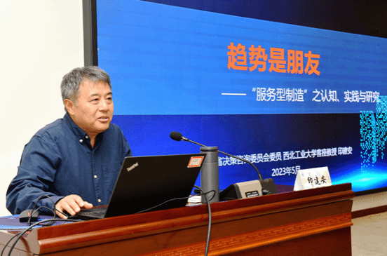 讲座教授印建安作了题为《趋势是朋友——“服务型制造”之认知、实践与研究》的专题报告。