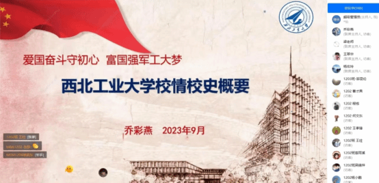 党委书记乔彩燕为2023级新生做题为《爱国奋斗守初心--校情校史与院情院史》的讲座。2023级非全日制专业学位MBA(EMBA)/陕MBA/MEM/MPAcc全体新生线上聆听了讲座。