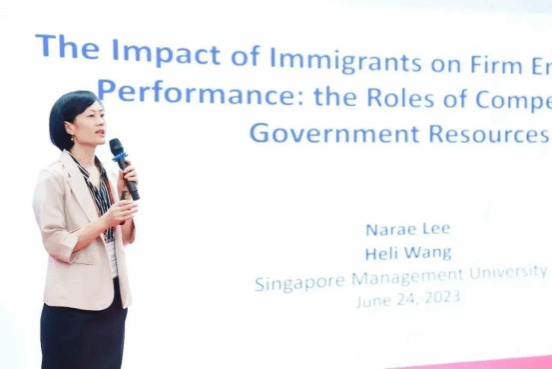 来自新加坡管理大学李光前商学院的Prof. Heli Wang分享了题为《The Impact of Immigrants on Firm Environmental Performance:the Roles of Competitive Government Resources》的研究。来自欧洲工商厕拍