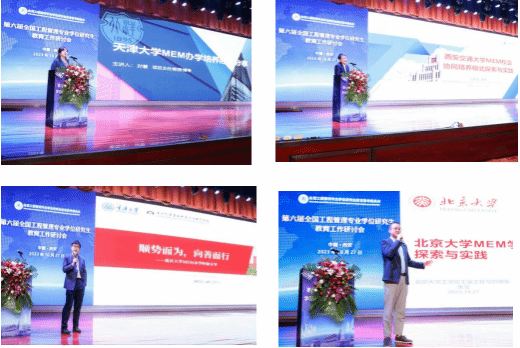 MEM中心主任何正文教授、重庆大学管理科学与房地产学院洪竞科教授,北京大学工业工程与管理系张玺副教授等8位专家围绕各自学校MEM人才培养、教学培养体系建设、案例建设、专业实践教学、质量保障、校企协同、产教融合、创新发展等方面分别作了精彩的大会报告。