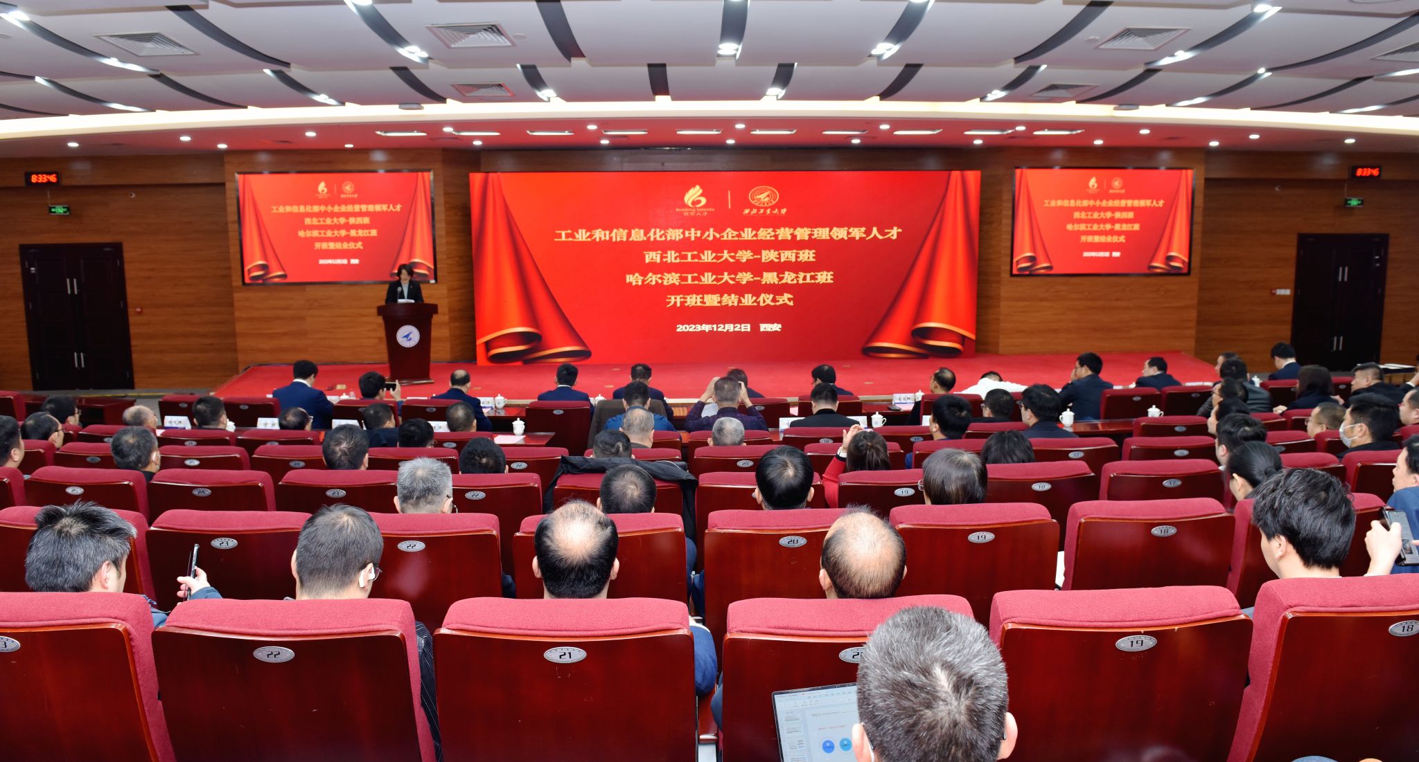 -陕西班(第9期)、2019-2020年度、2020-2021年度哈尔滨工业大学-黑龙江班结业仪式在西工大友谊校区顺利举行。工业和信息化部企业经营管理人才素质提升工程协调小组办公室副主任、人才交流中心副主任曾卫明,人才交流中心服务处处长白晓,厕拍