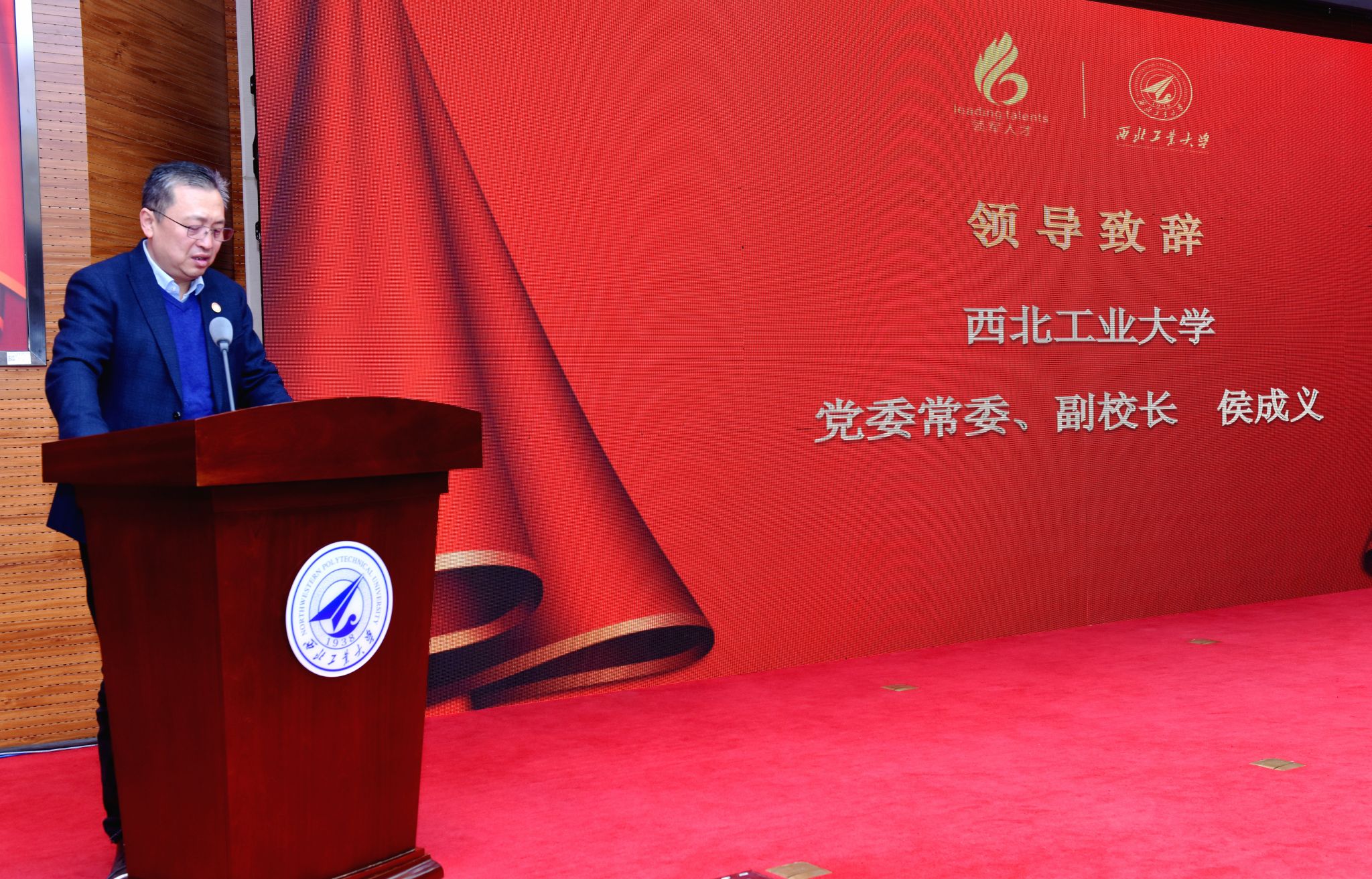 副校长侯成义致辞,他代表学校对新学员表示热烈欢迎,对顺利结业的学员表示诚挚祝贺。他讲到:“今年11月工信部金壮龙部长来校调研时也指出,服务支撑加快推进新型工业化、建设制造强国和网络强国,是部属高校的重要使命”。哈工大和我校作为“工信七子”,流淌着同样的军工血脉,承担领军人才培训工作,是工信部对两所高校的信任,也是我们发挥“服务社会”职能的重要举措。西工大作为“工信部中小企业经营管理领军人才培训”第一批获授权机构,自2013年以来已连续开办了12期领军人才培训,累计培训近700余人,为陕西经济转型升级和创新发展提供了强大的智力支持。最后表示,希望通过此次培训,建立起校企沟通的桥梁,推动科技创新、人才培养等领域校企实质性合作。