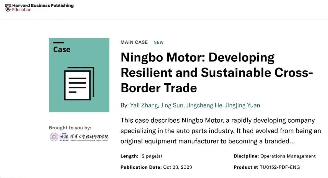 张亚莉教授团队撰写的英文教学案例《Ningbo Motor: Developing Resilient and Sustainable Cross-Border Trade》正式被哈佛大学商学院出版教学资源平台(即“哈佛案例库”)收录,并同步在清华大学经济厕拍