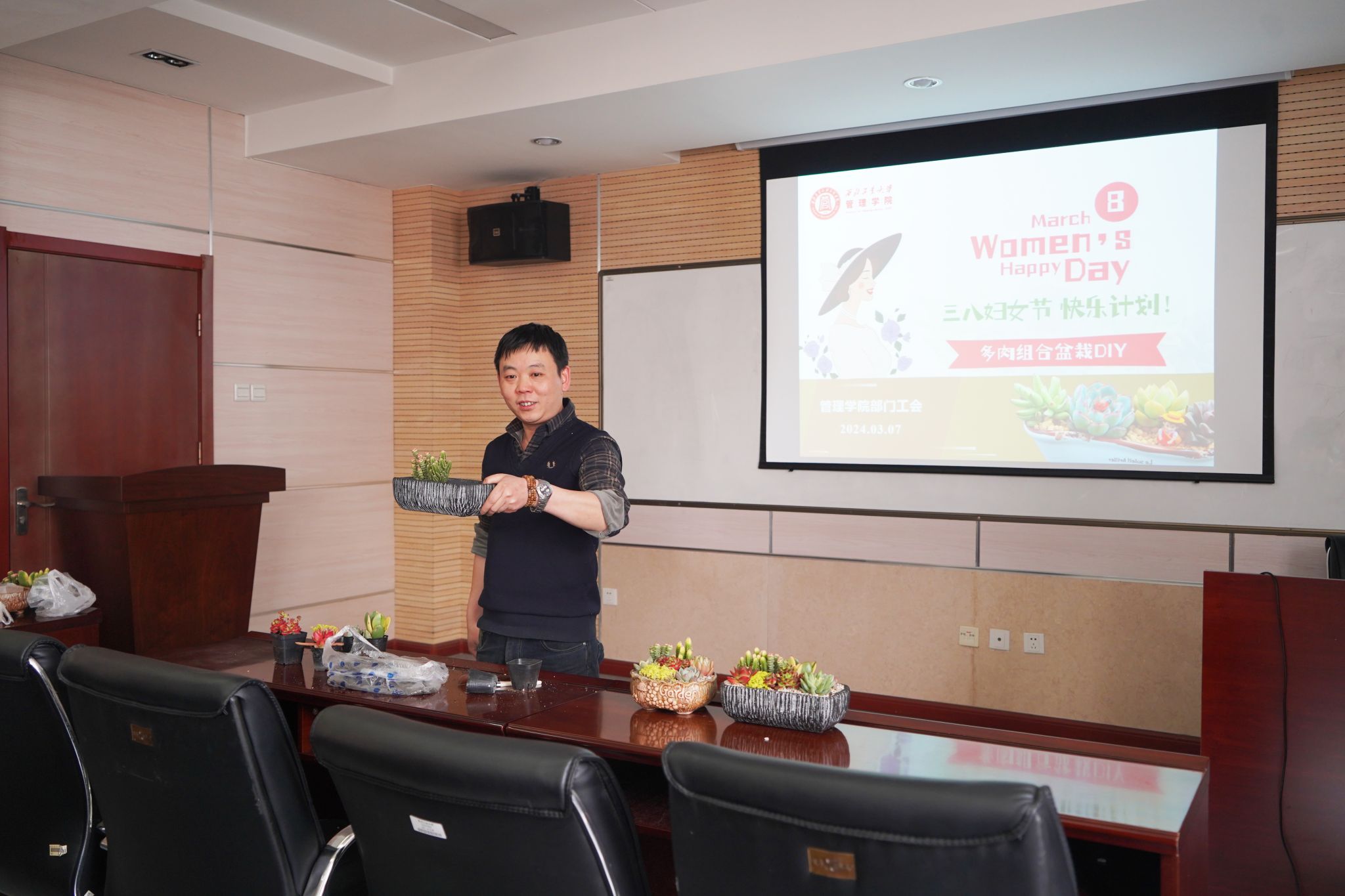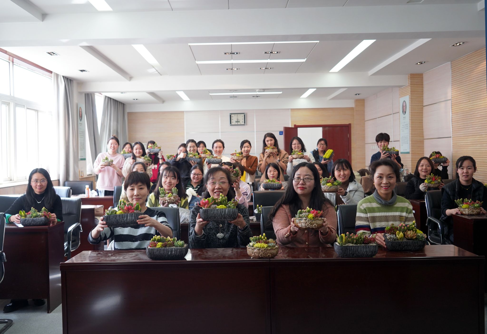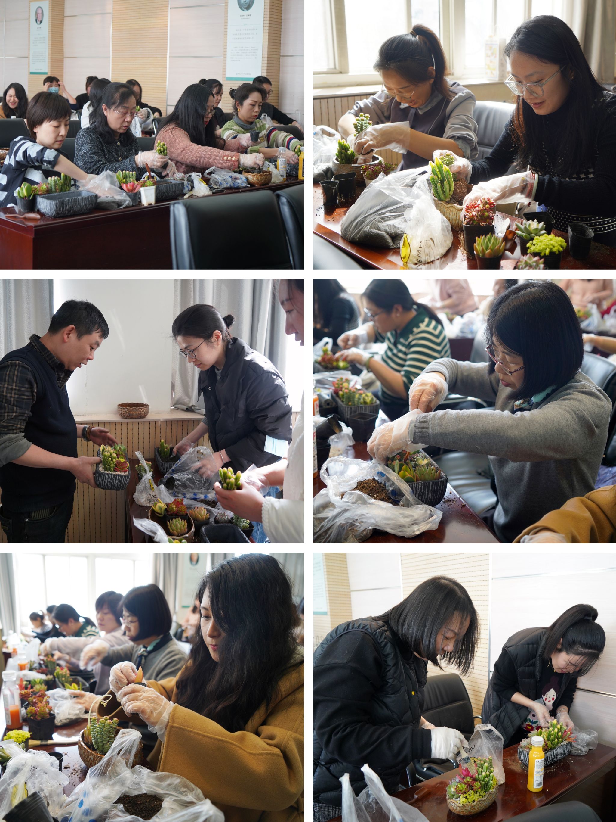 工会精心策划了多肉组合盆栽DIY活动,40余名女教师参加了此次活动。