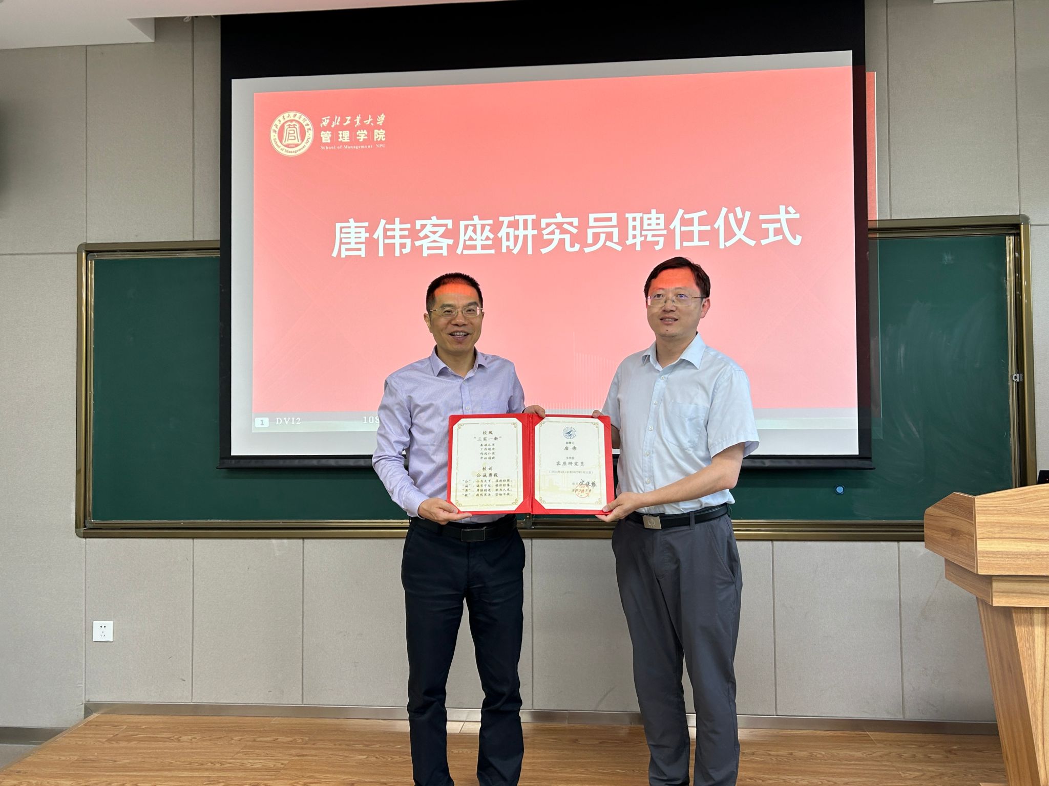 在讲座开始之前,车阿大对唐伟的到来表示热烈欢迎,对其个人经历和学术成就进行简要介绍,并为他颁发客座研究员聘任证书。车阿大表示,唐伟已成为学院的一份子,希望未来在项目申请、科学研究等方面能够助推学院高质量发展。唐伟表示,受聘为厕拍