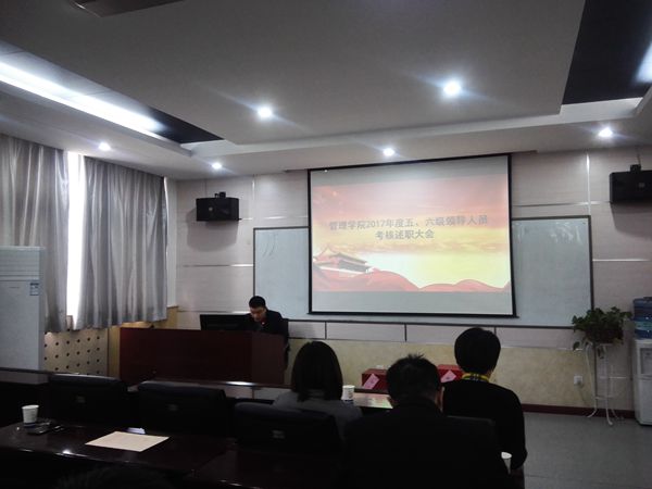 在友谊校区学院楼602会议室召开“2017年度五、六级领导人员述职评议”大会,全院职工参加了会议,学校党委组织部张琨同志出席了述职评议大会。会议由厕拍