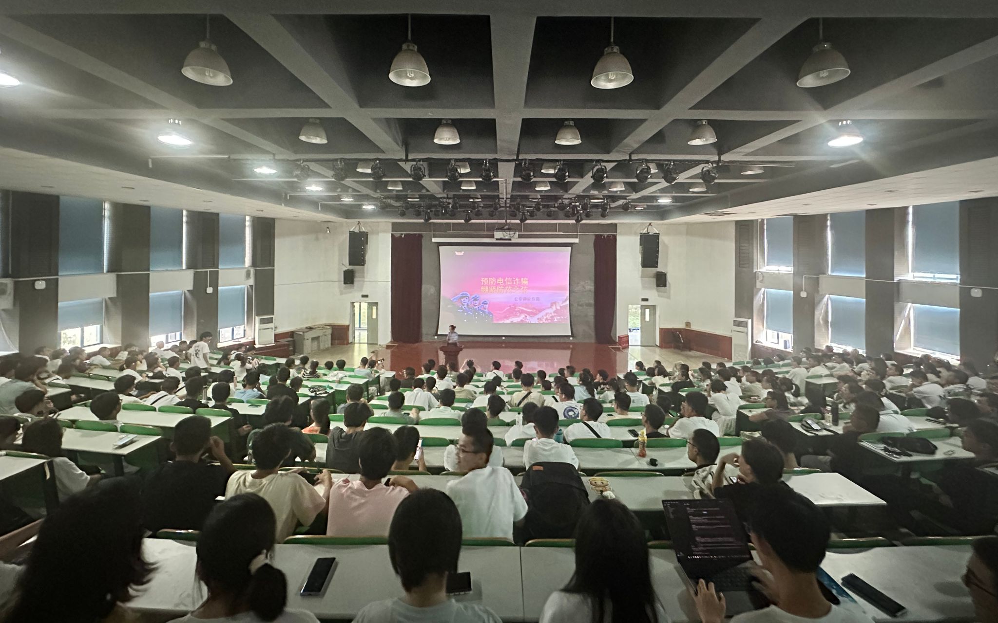 邀请了西安市公安局碑林分局的吕欣警官,为新生们带来了一场以“电信网络诈骗的识别与防范”为主题的精彩讲座。吕欣警官结合自己的反诈工作经历,通过幽默风趣的语言,为同学们讲解了大量大学生和家人遭遇电信诈骗的真实案例,警示同学们要注重保护个人信息,时刻保持对诈骗的警惕,不听、不信、不转账。此次讲座加深了同学们对电信诈骗的认知,提升了防范意识。