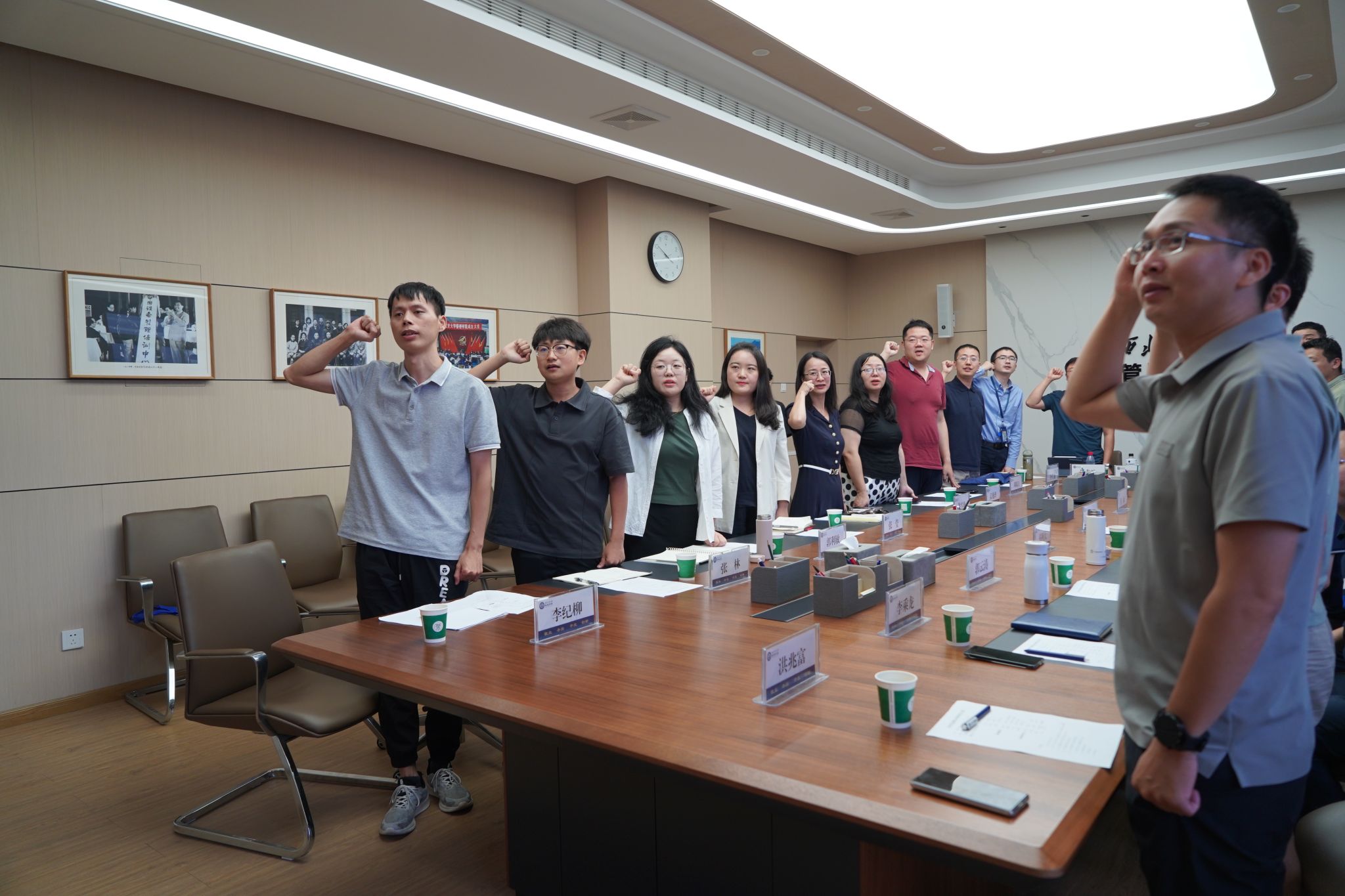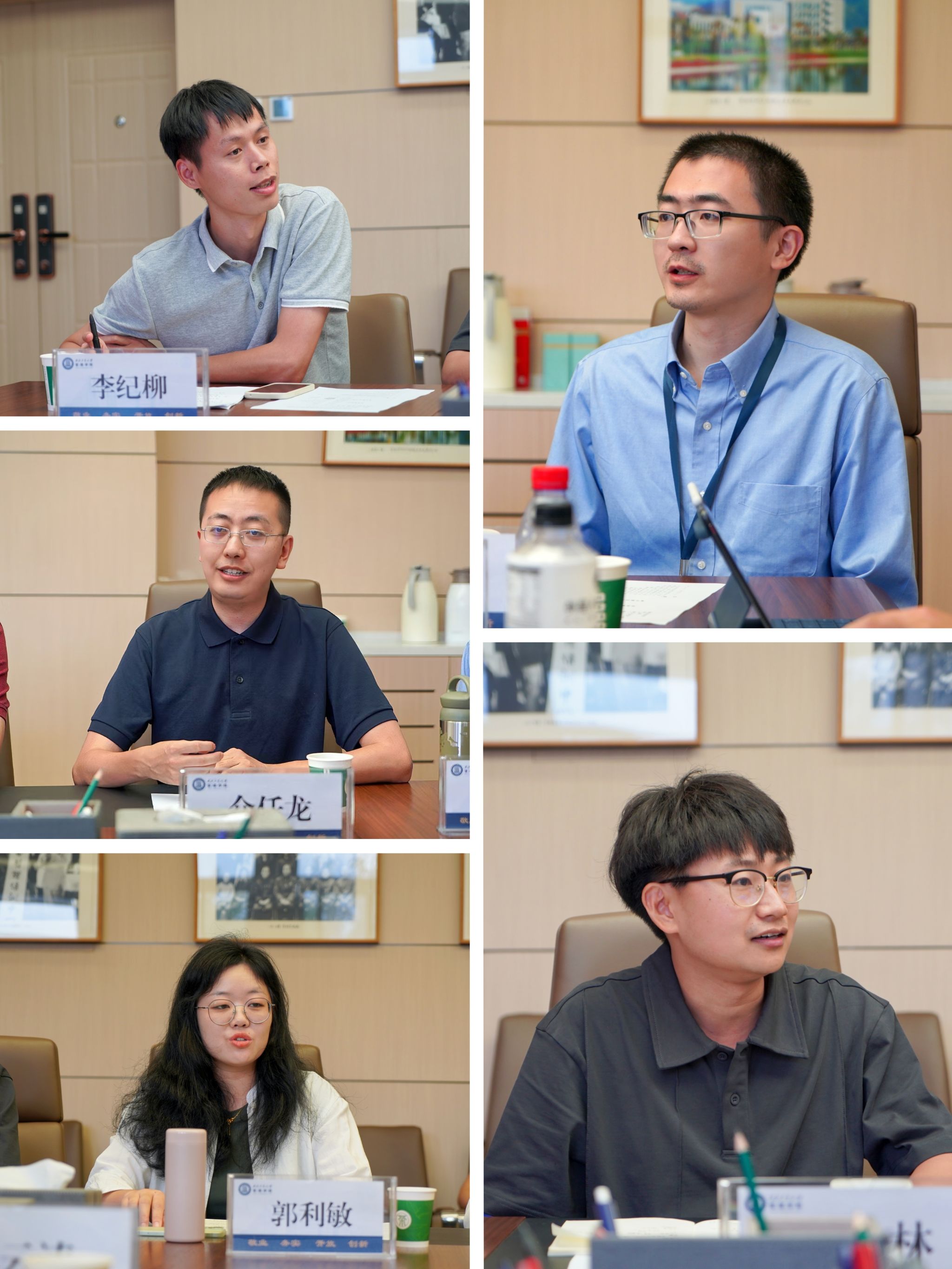 5名新入职的青年教师代表依次做自我介绍,共同交流求学经历与入职以来的成长收获,分享了未来工作的期待和计划,并立足当前岗位,就如何保持创新意识、学习姿态,以奉献教师“小我”书写强国“大我”,做一名“四有”好老师表达了自己的决心和信心。
