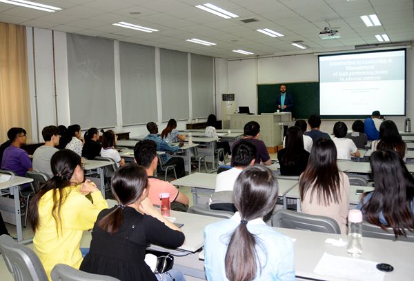 210报告厅为我校师生做了题为“Introduction to Leadership of High Performing Teams in Adverse Contexts”的讲座。讲座由许燕副教授主持,我校研究生及国际留学生30余人参加了此次讲座。