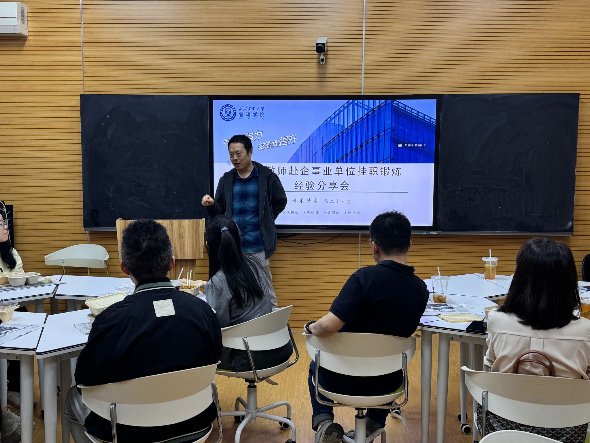 120活动室举行。此次活动以“青年教师赴企业挂职锻炼经验分享”为主题,旨在促进学院青年教师与企业的深度交流与合作。张涛副教授和杨倩副教授分享了他们在西咸新区秦创原的挂职经历和心得体会;人事人才工作办公室就正在修订的《厕拍