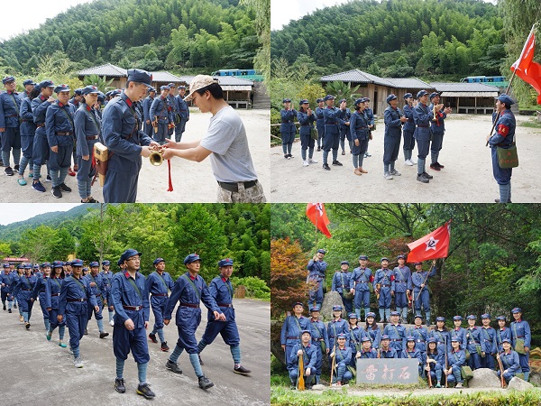 16日上午,培训团驱车前往荆竹山红色体验教学点,在教官带领下,分组建团,体验了从选团长、授团旗、建纪律等一系列仪式,进行了以井冈山精神教育为主题的拓展训练,在亲身实践中感受历史,增强凝聚力、战斗力。在杜鹃林雷打石前,两团分别宣布本团口号和三大纪律、唱团歌并吹响号角,在两团团歌的旋律中,仿佛回到了历史岁月,感受到了红军队伍团结一致、顽强不屈、纪律森严的革命精神。从雷打石步行下来,行至竹林溪水边,踏着红军当年的足迹穿越河谷,28团和32团分别作为防守和进攻方进行了激烈的交战,最终32团突破28团封锁线,体验现场救护伤员......在风雨和汗水的洗礼中,学员们仿佛又回到了当年那段血与火的峥嵘岁月。