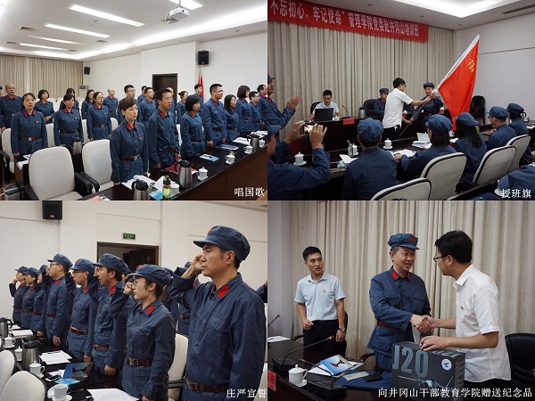 培训团授团旗,在鲜艳招展的班旗旁,全体学员庄严宣誓,学习井冈山精神,继承先辈遗志,发扬光荣的革命传统,为实现伟大“中国梦”而努力奋斗!开班仪式上,李小聪书记代表学院党委动员全体学员深入学习体会党在十分艰难的条件下,为国家民族的独立、强盛,矢志不渝,进行艰苦卓绝斗争的坚定信念、责任与担当,并回顾我校光荣的历史传统,校训完美诠释了西工大人科技报国思想,要求全体学员通过培训学习,进一步统一思想、明确目标,凝聚力量,砥砺前行。最后,李小聪书记代表学院党委向井冈山干部教育学院赠送了“歼20”纪念品并介绍了其意义,李慧斌委员连连称赞“西工大是非常卓越的学校,这个礼物也非常有纪念意义,向你们学习”。