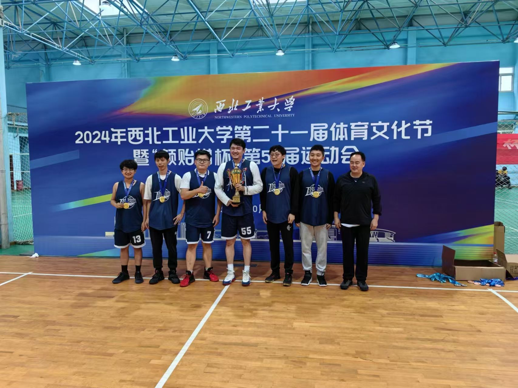 教职工篮球队在比赛中脱颖而出,以出色的表现问鼎冠军,为学院争得了荣誉。该队由李纪柳、那依力·库尔班、王鹏、牟梓豪、张林、李恒宇、宫翔、洪兆富八位教师组成。