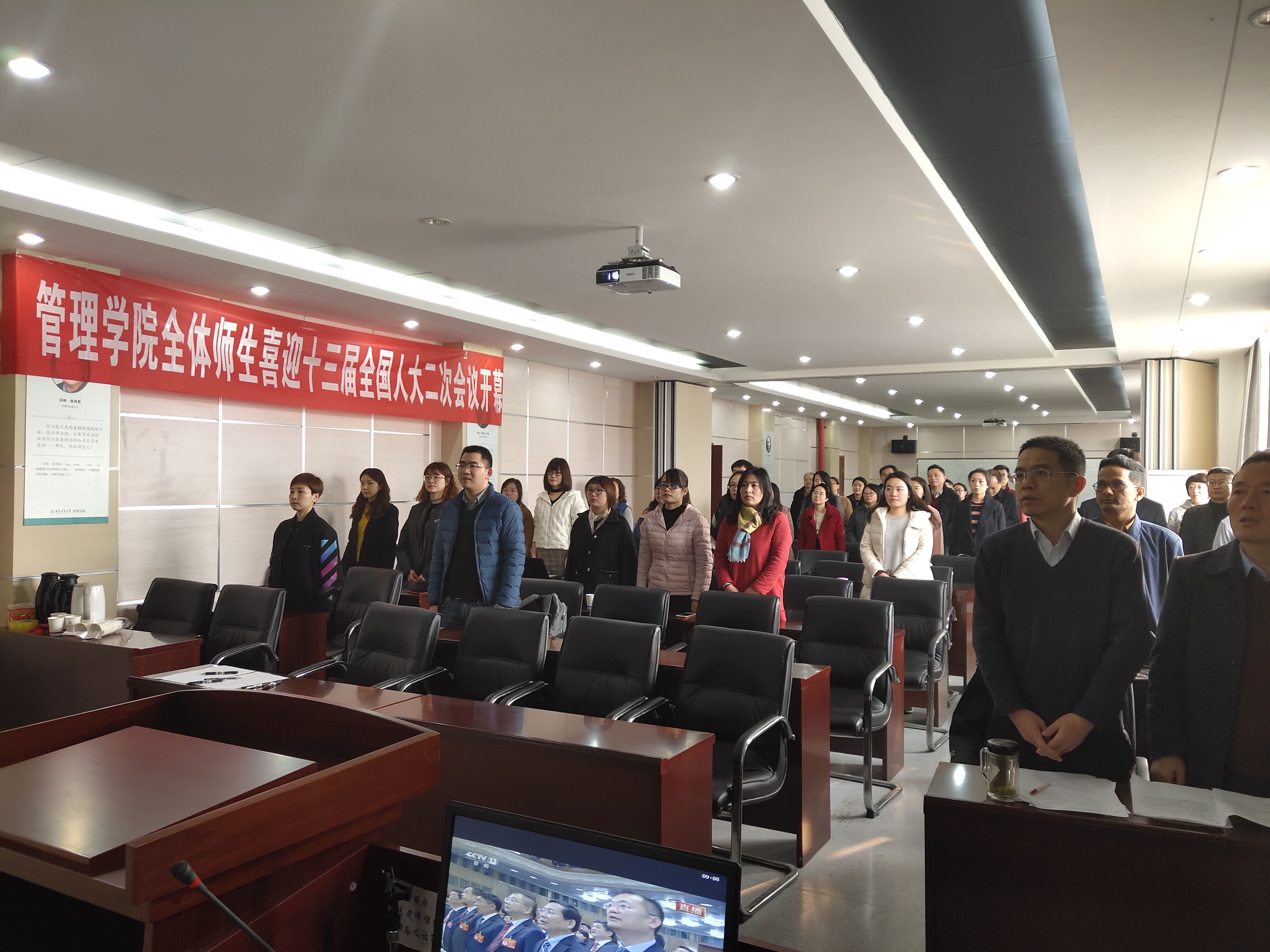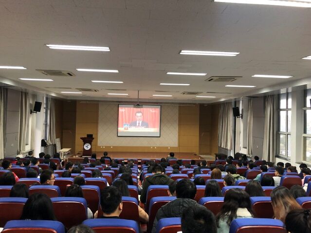 全体师生集中收看十三届全国人大二次会议开幕会并热议政府工作报告