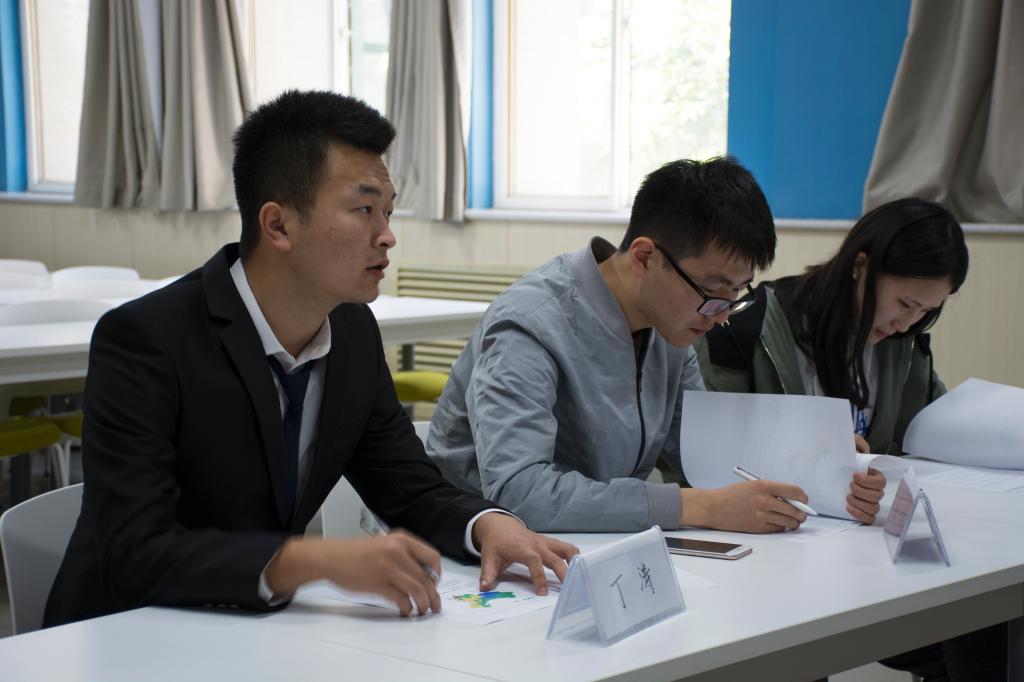 的MBA与EDP学生作为专家评委对参加活动的同学进行面试。面试以无领导小组讨论的形式进行,共进行了四场。面试题目是通过一段材料考察管理学中的目标管理在实际案例中的分析应用,考验同学们的组织领导能力、团队协作能力的同时,对专业素养、临场应变、材料解读分析等能力也有较高层次的要求。