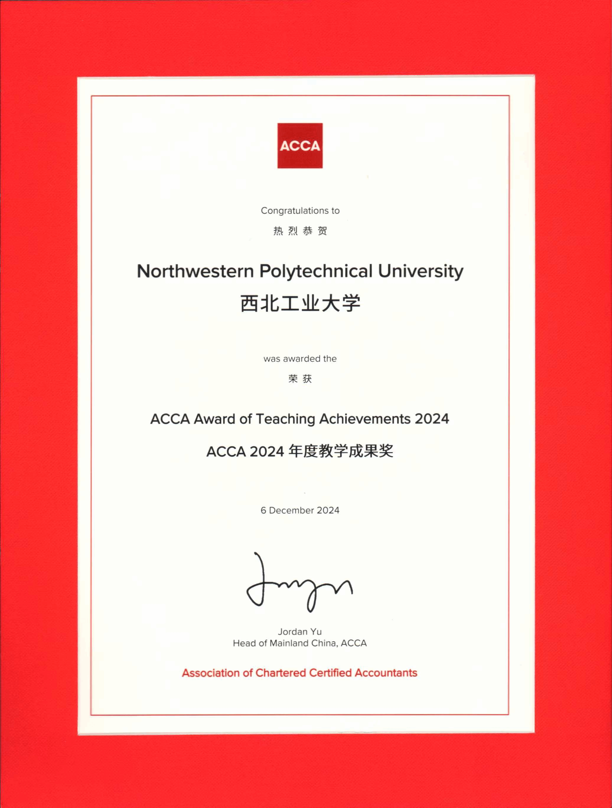 ACCA项目荣获2024年度ACCA教学成果奖。