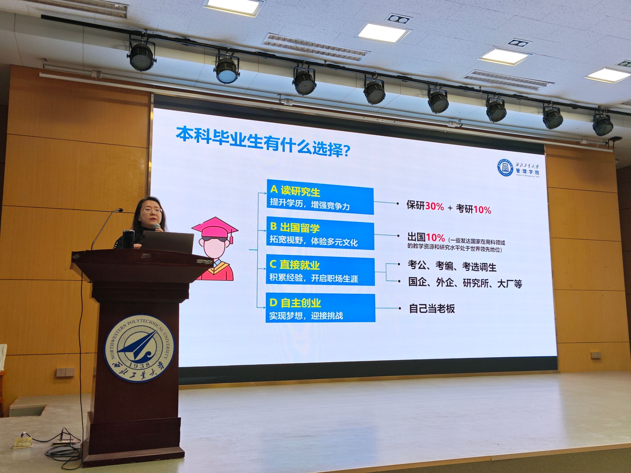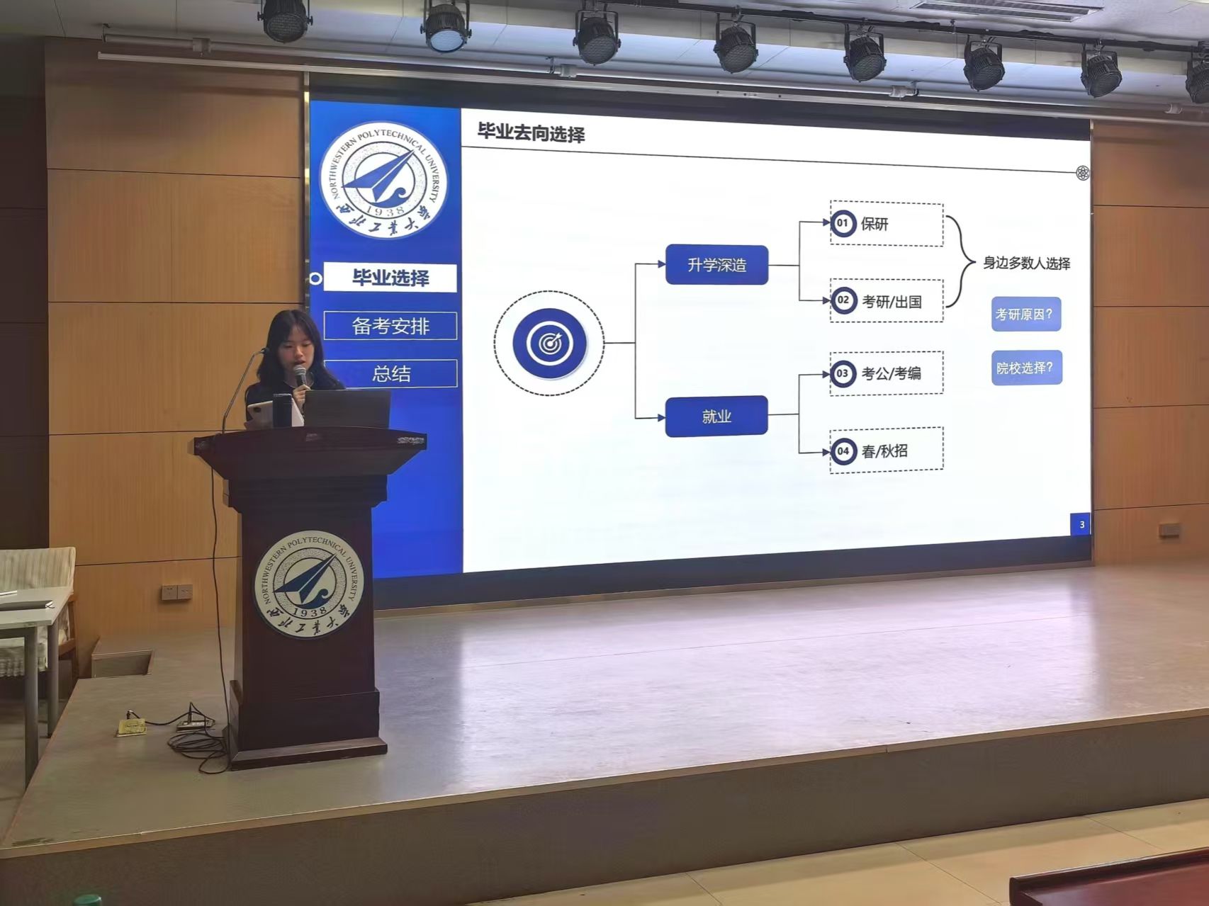 在长安校区环形报告厅举办本科生学业规划指导报告会。学院党委副书记王海啸、六级职员白洁、学校留学服务中心项目负责人文雅、2022级辅导员郭利敏、2024级辅导员张宇,以及优秀学生代表房泊辰、杨艺璇出席活动,2022级全体本科生参与。活动由兼职辅导员管琳菲主持。