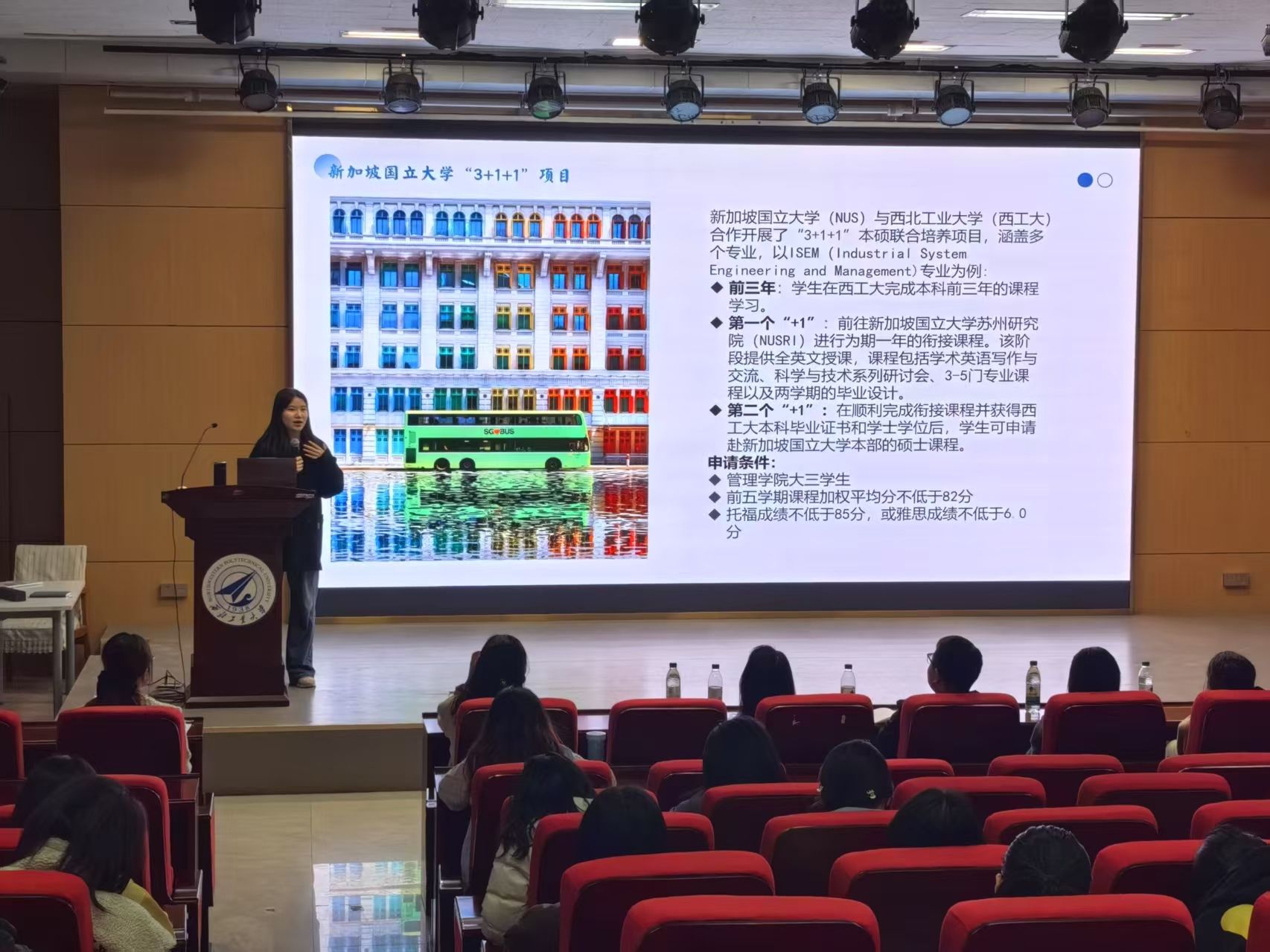 文雅聚焦管理专业学生的留学需求,从跨文化体验、前沿学术资源及语言能力提升三方面解读海外深造价值。她系统梳理了申请流程的关键节点和时间规划,并针对金融、咨询、跨国企业等留学生热门就业方向提出建议,倡导学生以“国际化视野拓宽职业赛道”。