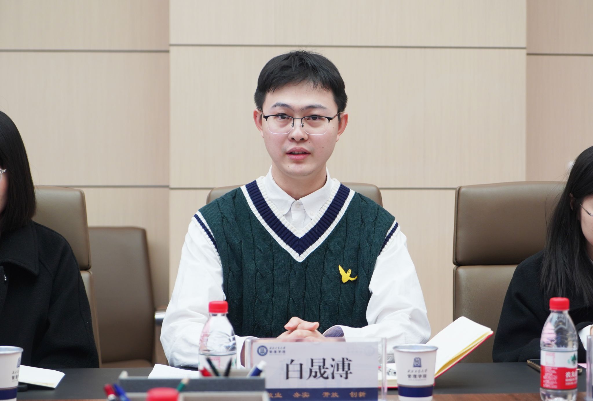 博士毕业生刘海潮、硕士毕业生白晟溥作为毕业生代表发言,分别总结了在读研期间的成长历程,并围绕学院未来发展提出了建设性建议。来自各专业的8名毕业生代表畅所欲言,分享了求学期间的收获与感悟,深情表达了对学校、学院和师长的感恩之情以及对未来的美好展望。此外,毕业生代表们还围绕研究生课程设置、评奖评优体系优化、学生就业和发展规划等方面提出了意见建议。学院领导和老师们认真倾听并详细记录了同学们的意见建议,对部分问题进行了积极回应,并依次向毕业生们送上诚挚的祝福。