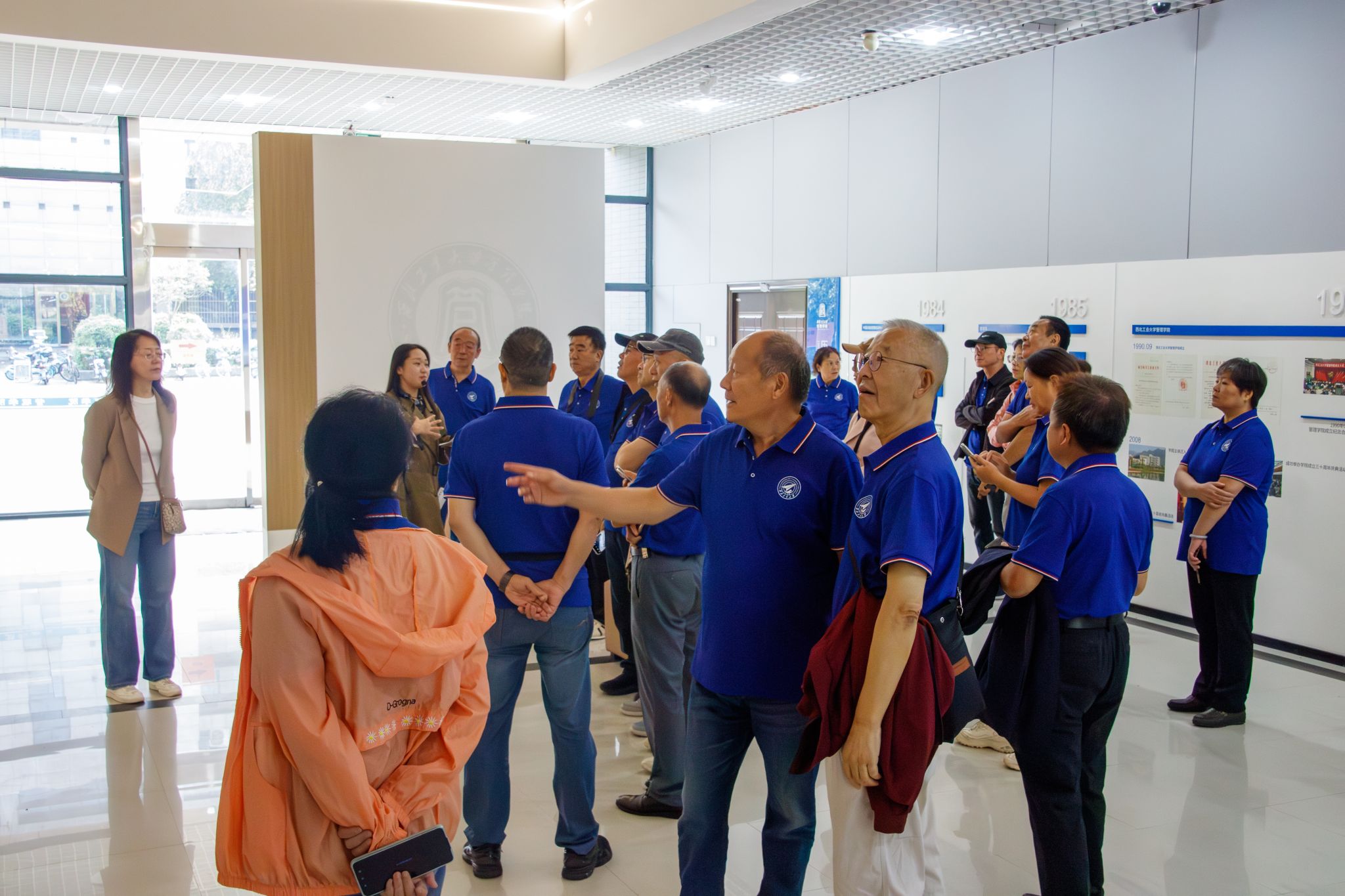 ,工作人员介绍了近年来学院在学科专业建设、人才培养、科学研究、国际合作等方面取得的成绩,校友们听得认真、看得真切。驻足历届本科生与研究生毕业照墙、学院荣誉墙前,校友们看着学院一步步迈向更高质量发展,自豪之情油然而生。