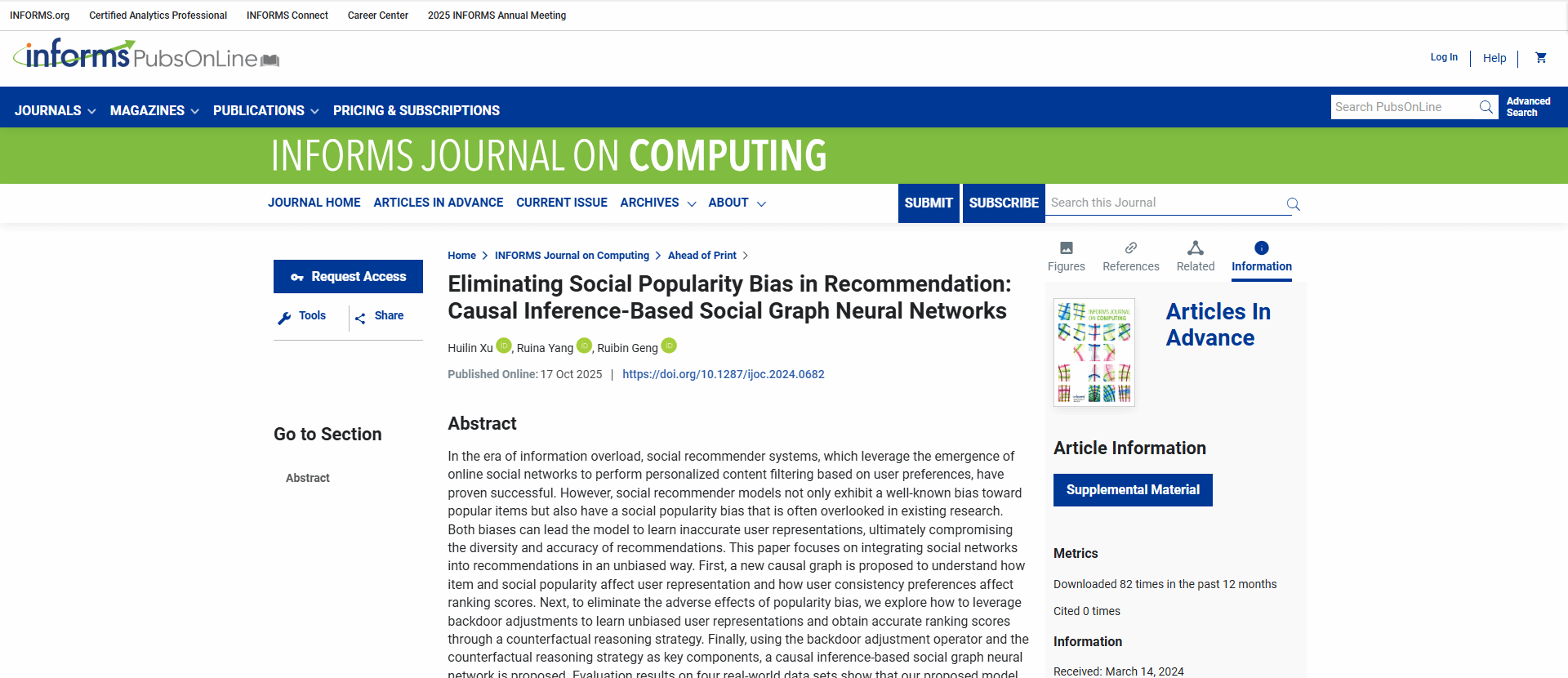 近日,国际运筹学与管理科学学会(INFORMS)旗下期刊《INFORMS Journal on Computing》在线发表了厕拍