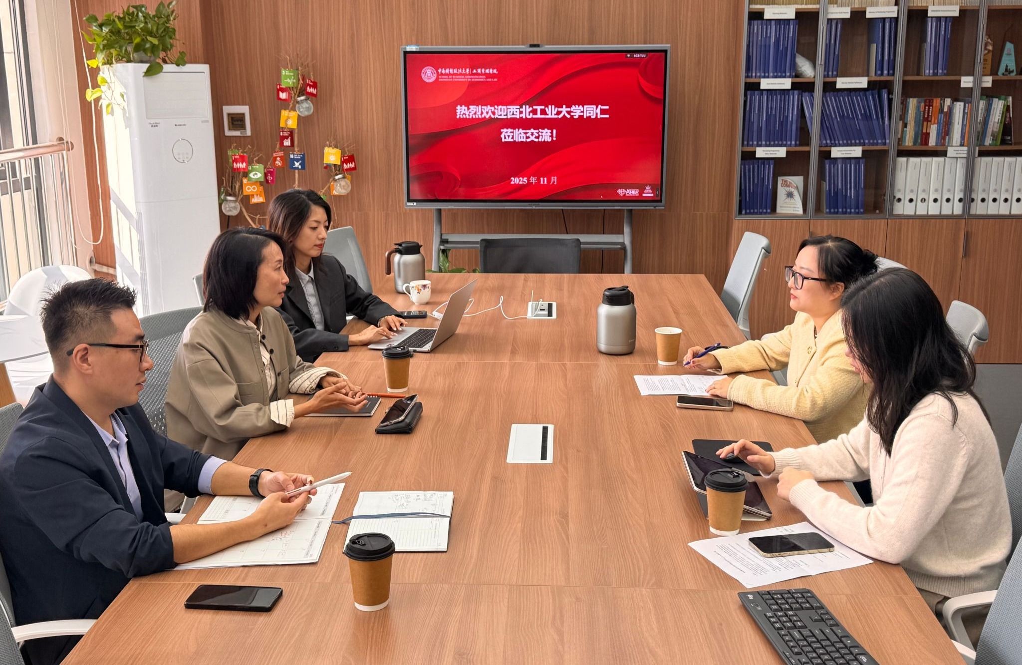 ,调研组围绕AACSB认证中的AOL(学习质量保障体系)建设、现场访视准备、报告撰写流程等关键环节与国际事务与国际认证办公室主任吴英娜、认证专员陈珂、认证专员朱妍臻进行了深入交流。参会人员分别重点介绍了中南财经政法大学工商厕拍