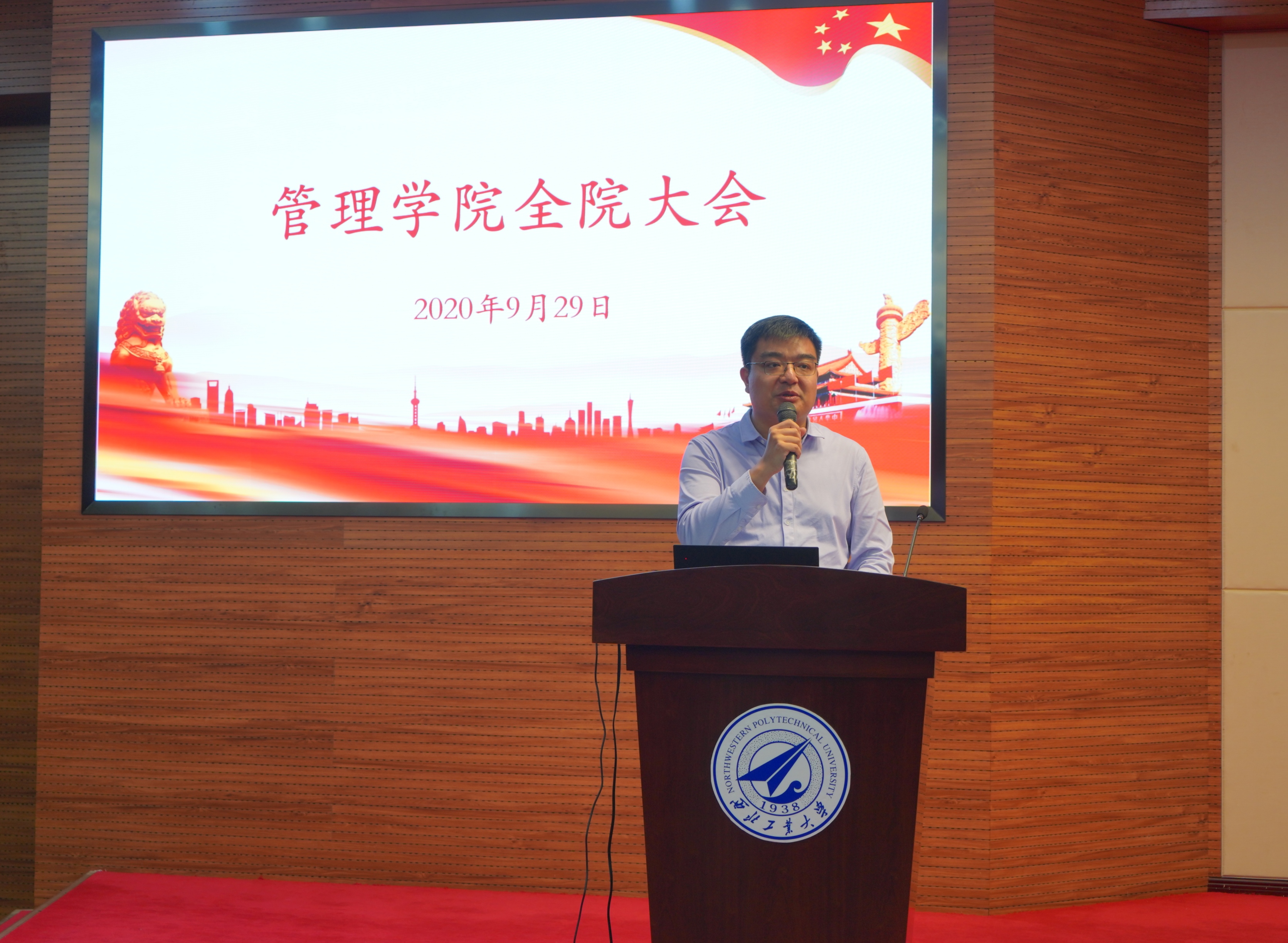 副院长贾明首先对研究生管理工作的开展情况进行了通报,接着,就学院近年来项目申报和立项情况进行了具体分析,通过与兄弟院校申报情况比对,指出当前学院项目申报中的主要问题,并就如何克服困难、规避短板提出了具体举措。副院长郭云涛对学院专业学位的招生报名、培养管理以及社会实践等方面工作进行了详细介绍。希望老师在学生培养过程中结合专业学位学生特点加强管理。院长助理白洁对学校奖学金评定工作的四项新变化做了说明,并就2020届学生就业情况进行了通报。