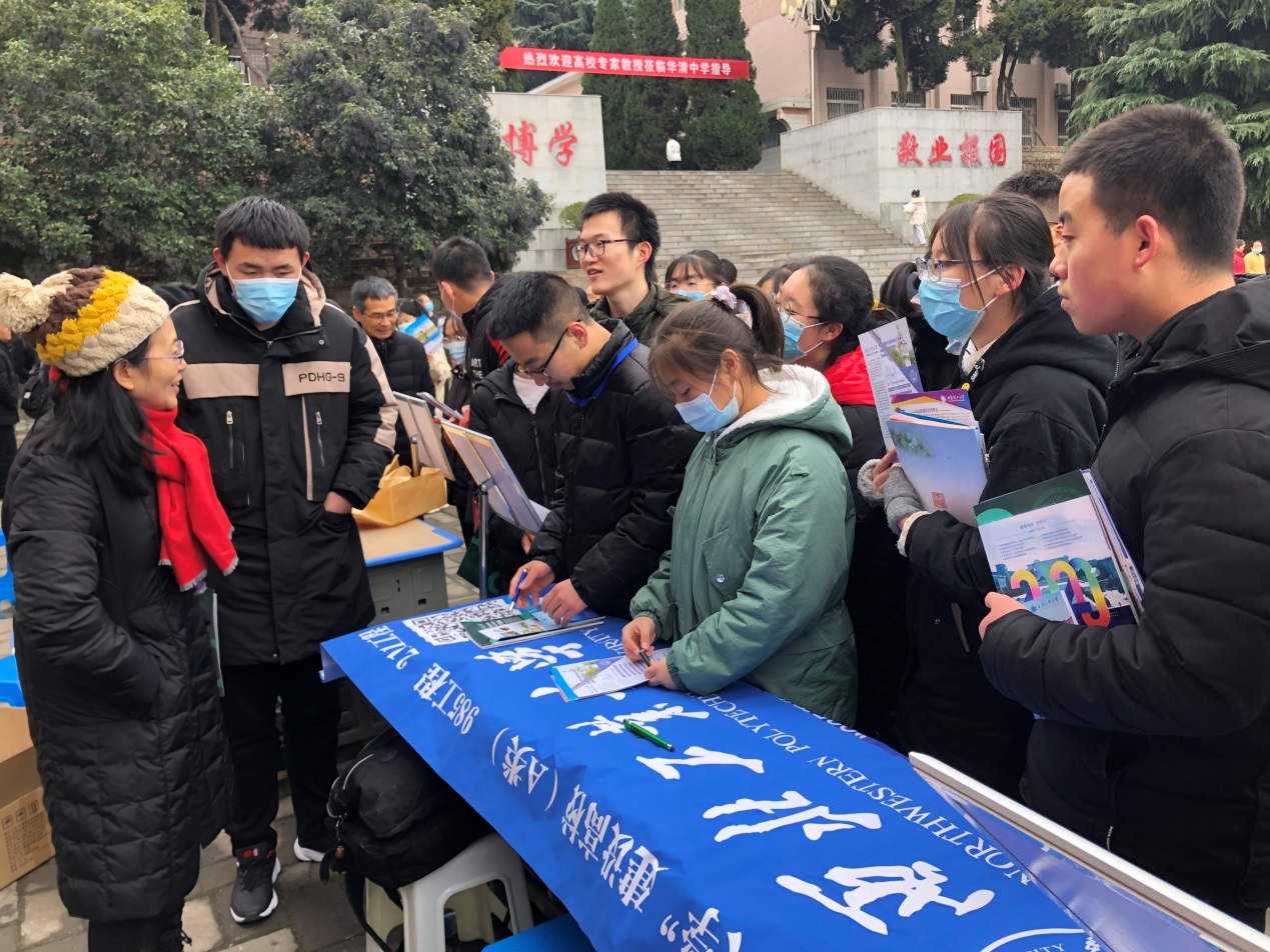 招生组陕西省招生组长王莉芳,航空学院副院长万方义、华清中学招生负责人王艳平及研究生招生大使周惠、罗皓一行五人赴华清中学进行了交流回访,并做了主题讲座及招生咨询。