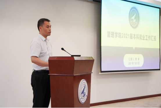 副书记樊琳就学院2021届本科毕业生就业进展情况、就业工作举措、就业工作存在的问题以及下一步计划做了详细介绍,同时,对学院暑期社会实践开展的计划及注意事项进行了说明。