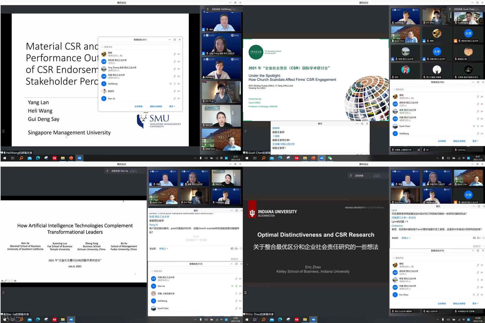 学科建设办公室主办,中国管理研究国际学会(IACMR)、《Journal of Business Ethics》期刊(JBE)协办的2021年“企业社会责任(CSR)国际学术研讨会”于2021年7月6日至7日在腾讯会议线上召开。会议主席由厕拍