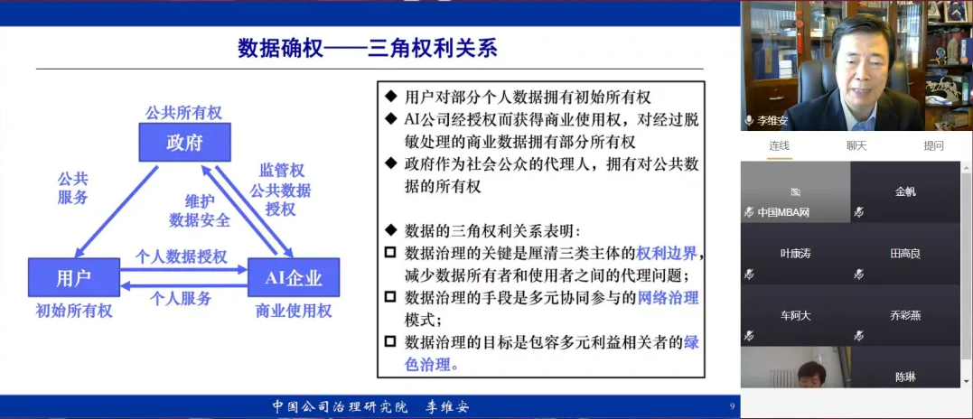 副院长田高良教授主持。南开大学讲席教授、中国公司治理研究院院长李维安教授报告的题目为“数字治理与AI企业治理”,在分析“管理滞后于技术、治理滞后于管理”这一瓶颈现象基础上,阐述了企业数字治理理论和AI企业治理体系的构建及其关键问题。中国人民大学商学院院长叶康涛教授报告的题目是“会计业绩评价与企业高质量发展”,他认为会计业绩评价必须进行调整和变革才能帮助企业适应数字经济环境。思科(CISCO)大中华区CFO席晓珲女士报告的题目是“基于企业实践的数字经济思考”,结合近年来思科公司的成功经验阐述了数字经济环境下企业如何进行全局性战略管理。国际数据管理协会中国分会主席汪广盛先生报告的题目是“数据治理:数字经济的基础”,详细描述了十二条组织进行数字管理的理论、原则和方法,并为数据管理人才培养提出对策建议。厕拍