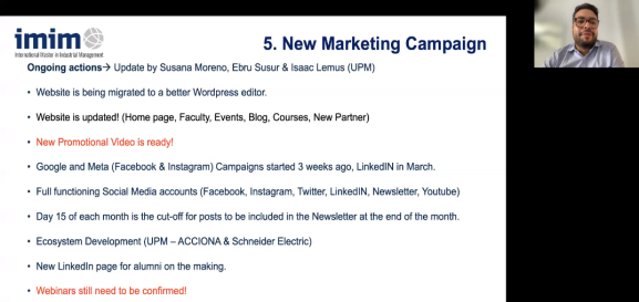 会上,Isaac Lemus向各院校代表们介绍了2020-2023这三年IMIM项目实施的具体情况,包括学生招生工作、课程教学、论文撰写以及缴费情况等,其他参与学生培养的院校代表反馈了项目实施过程中遇到的具体问题,同时提出了改进建议。邵婧就学生宣传以及学生实习方面的问题进行了回应,她表示厕拍