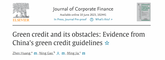助理教授黄珍与合作者的研究成果“Green credit and its obstacles: Evidence from China's green credit guidelines”在《Journal of Corporate Finance》期刊上在线发表(//doi.org/10.1016/j.jcorpfin.2023.102441)。《Journal of Corporate Finance》是公司金融领域公认的国际顶级期刊,是JCR一区期刊和ABS四星级期刊,最新公布的影响因子为5.107。这也是我院教师首次在这一级别的财务类国际高水平期刊上发表研究成果。