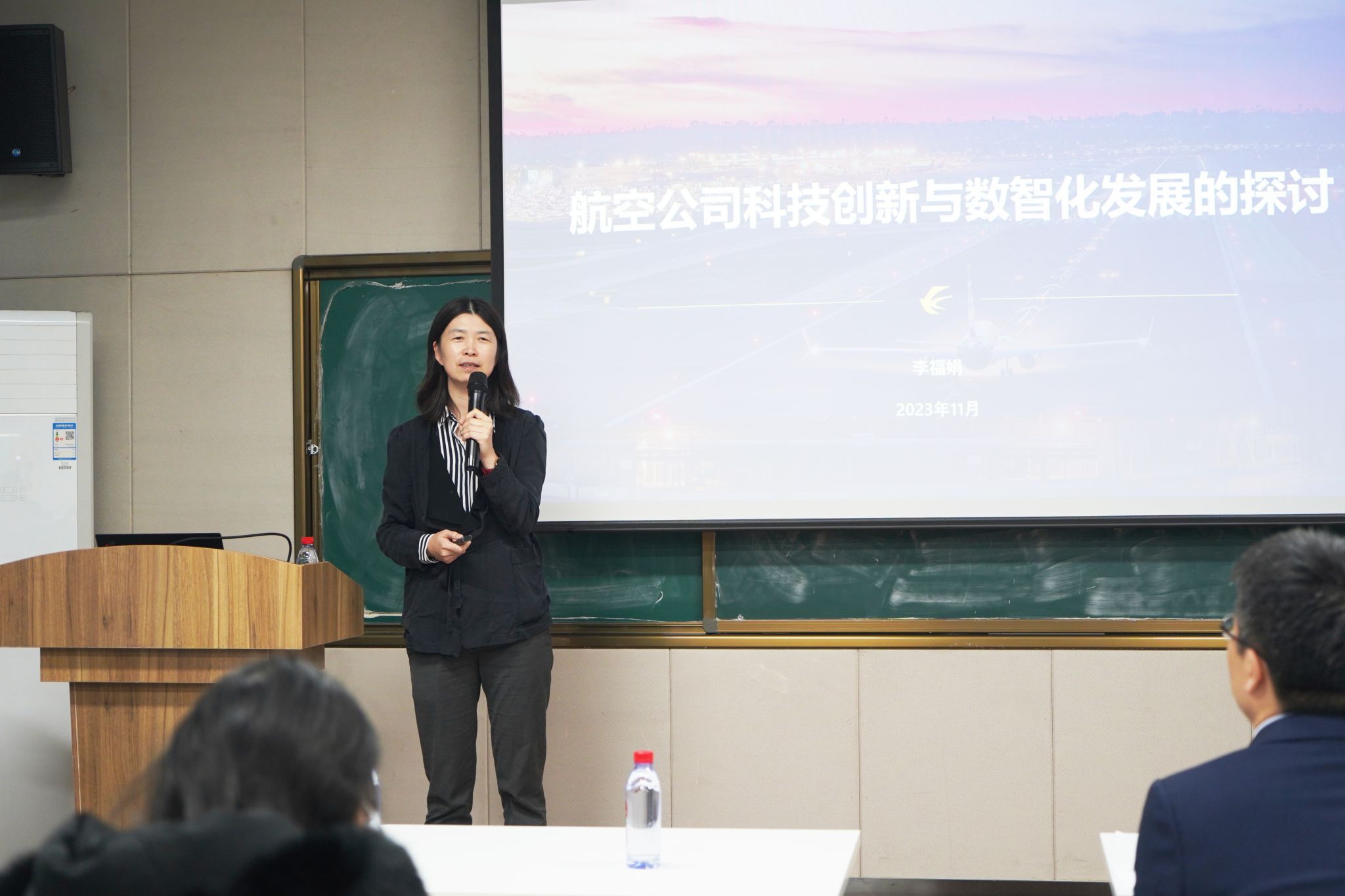 邀请中国东航航空集团东航技术应用研发中心有限公司副总经理兼总法律顾问李福娟博士进行学术报告,本次报告会聚焦航空公司科技创新与数字化发展,旨在探索航空领域的科技创新路径以及数字化转型的发展趋势。报告会由厕拍