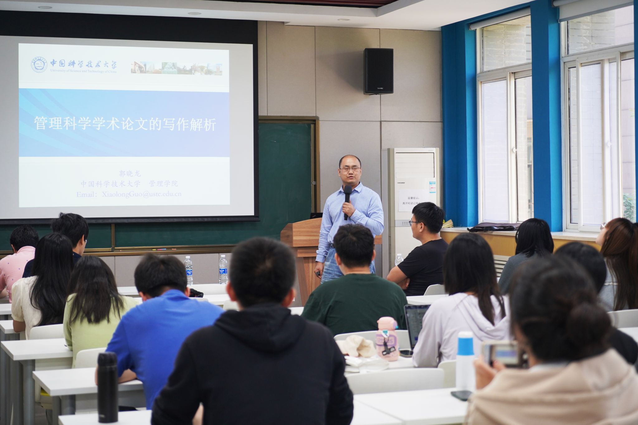 本次学术报告会议为管院师生提供了分享学术见解和交流科研经验的平台。通过本次报告会,同学们了解到了管理科学学术论文写作的思路与技巧,在互动问答环节,郭晓龙教授与同学们就报告主题进行了充分的讨论和交流,并针对师生关于写作细节的疑问提供了详细的解答。