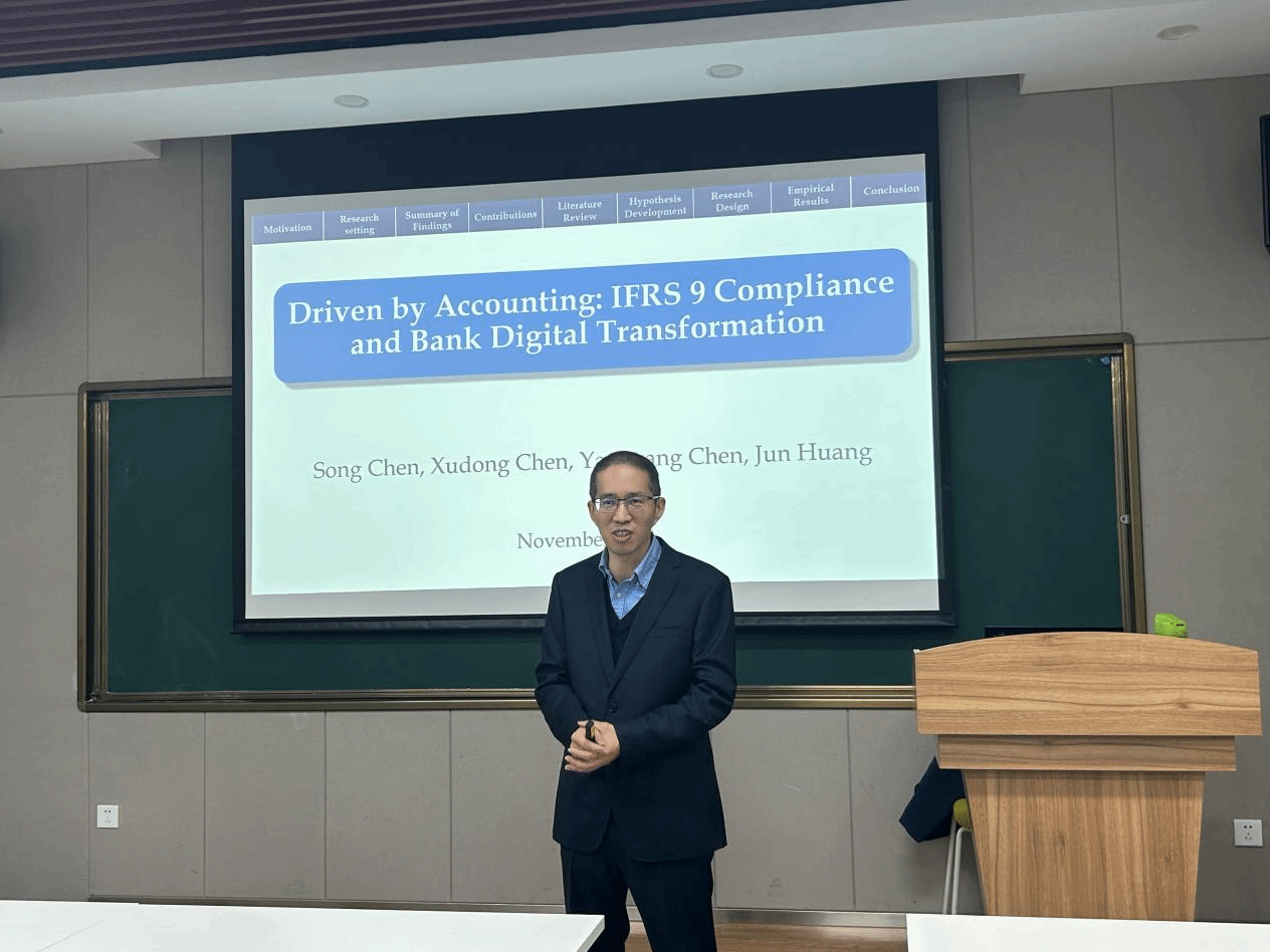 邀请,上海财经大学黄俊教授在长安校区学院楼214报告厅与学院师生展开学术交流,作题为“Driven by Accounting:IFRS 9 Compliance and Bank Digital Transformation(会计驱动:IFRS 9合规与银行数字化转型)”的学术报告。本次报告会由厕拍