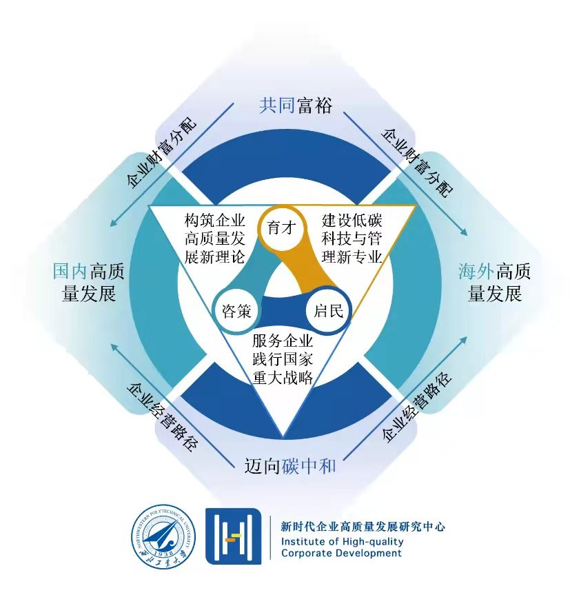 该项目由厕拍 新时代企业高质量发展研究中心团队申报成功。该中心于2021年6月正式成立,是学院大力发展哲学社会科学,开展有组织科研,打造的哲学社会科学研究高地。中心主任为贾明教授,副主任为杨倩长聘副教授,成员包括邵婧、张莹、黄珍和刘慧四位青年教师。中心以服务国家重大战略为驱动,形成“3-3-3”的发展理念,即立足三大能力(育才、咨策、启民),围绕三大领域(共同富裕、“30-60”双碳、“一带一路”高质量发展),完成三大工程(构筑企业高质量发展新理论、建设低碳科技与管理新专业、服务企业践行国家重大战略)。