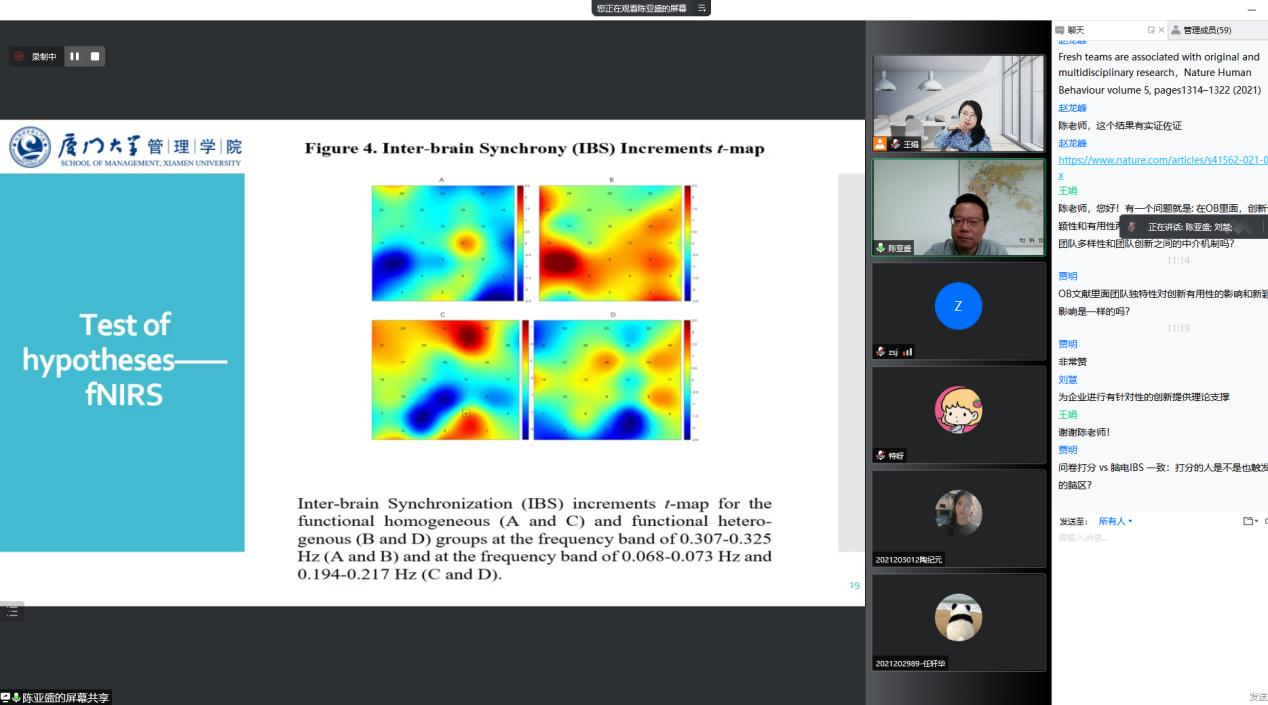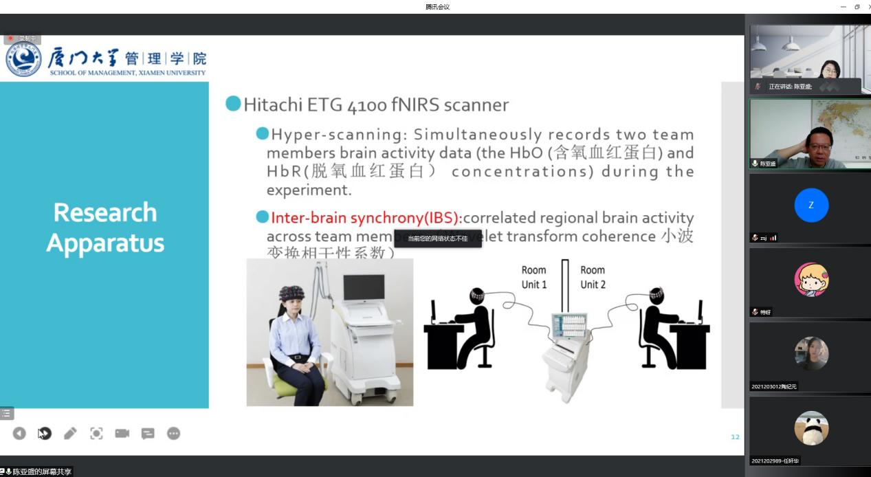 邀请,厦门大学陈亚盛教授作了题为“专业技能多样性对虚拟团队创造力的影响——一项基于功能性近红外超扫描的实验”的报告,报告会由厕拍