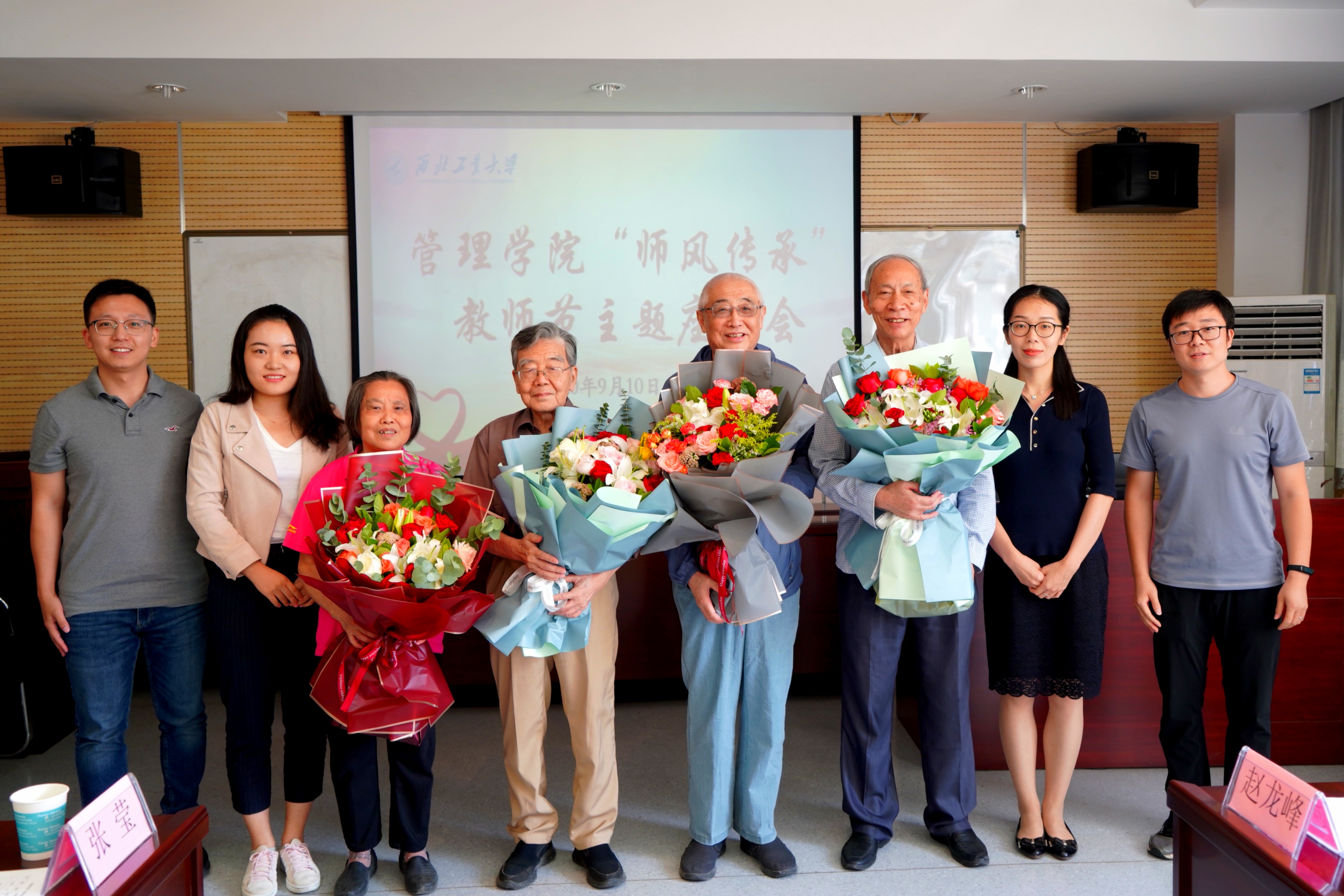 的发展贡献自己的力量;钱福培从自己工作经历讲起,从最早接触项目管理的理念到为扩大项目管理的影响力而努力奔走,钱教授饱含深情地讲述自己为学院学科发展奉献一生的经历;梁三星从“立道德、传知识、强能力”三个方面展开分享,他指出,教师在育人时要有广博的知识、严谨的态度、育人的情怀。而作为工大人更要有为学校、学院增光添彩的真心与责任心;李晓婉结合自己曾经从事的学生工作经历,通过鲜活的故事谈到,学生工作是一项辛苦而又幸福的工作,最重要的是要“以情动人、以情感人”,做事前要心中有数,做事后要及时反思。四位老教师朴实无华但字字珠玑的分享,深深打动折服了在座的每位青年教师,现场掌声频频。