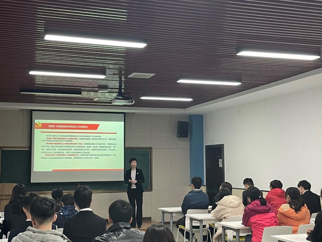 乔彩燕书记从《条例》修订的背景过程和意义、修订完善的重点内容等方面,进行了全面详细的解读。《条例》是对高校基层党组织工作做出的全面规范,旨在构建高质量的高校党建工作体系,应当学深悟透、融会贯通。乔书记解读的同时穿插党支部知识问答帮助同学们巩固党史学习,强调党支部支委要认真学习贯彻《条例》,全面掌握《条例》内容,严格执行《条例》规定,坚持学思践悟,做到知行合一,引领学生党支部高质量发展。