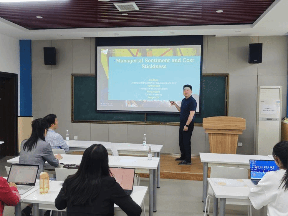 邀请,香港城市大学商学院会计系余扬新教授在学院214教室作了题为“Managerial Sentiment on Firms’ cost Stickiness”的学术报告会,讲座由会计系教师封华主持,学院30余位同学和会计系、工商系10位老师参加。