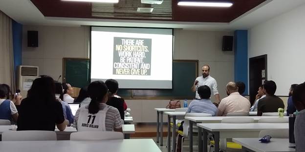 Faizan Ali博士结合自己丰富的研究经历,同时结合大量实例,向同学们详细介绍了发表论文中遇到的问题及其应对策略,包括如何选择合适的期刊,论文写作中的基本要求,如何才算是一篇好论文,论文写作中的常见错误,论文被拒的主要原因,评审人的所思所想,如何选择一个好的研究选题等。报告会气氛活跃,同学们和Faizan Ali博士进行了频繁的互动,就同学们感兴趣的问题进行了充分的交流。