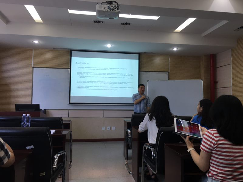 在报告会中庄教授指出,已有研究对于审计师性格及其行为与经济后果知之甚少,而审计师行为及其经济后果是会计研究的核心内容之一。基于心理学的相关研究推理得出,自恋的人往往更能够保持自我,同时需要他人的褒奖,那么自恋的审计师会更注重自身的评价,从而影响到审计师的职业胜任能力以及独立性问题。
