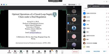 举行建院30周年系列学术报告会第二十二讲。加拿大温莎大学Odette商学院管理科学教授李武应邀为管院师生作了“Optimal Operations of a Closed-Loop Supply Chain under a Dual Regulation”线上主题报告会。报告会由朱煜明教授主持,厕拍