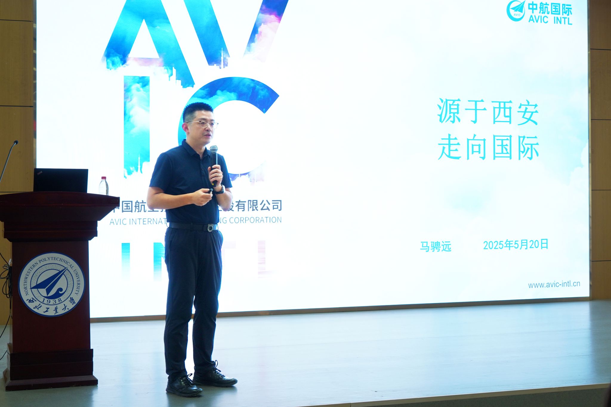 马骋远结合学习、工作经历进行分享,系统全面介讲解了中航国际的发展历程与全球化业务布局,重点介绍了中航国际在“一带一路”倡议下推动中非合作的实践成果,以及个人的见闻与成长。