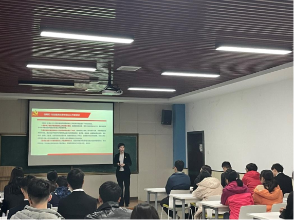 乔彩燕书记从《条例》修订的背景过程和意义、修订完善的重点内容等方面,进行了全面详细的解读。《条例》是对高校基层党组织工作做出的全面规范,旨在构建高质量的高校党建工作体系,应当学深悟透、融会贯通。乔书记解读的同时穿插党支部知识问答帮助同学们巩固党史学习,强调党支部支委要认真学习贯彻《条例》,全面掌握《条例》内容,严格执行《条例》规定,坚持学思践悟,做到知行合一,引领学生党支部高质量发展。
