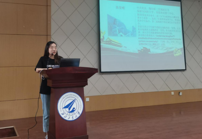 优秀党员代表、本科生第二支部副书记陈紫蝶同学进行经验分享。陈紫蝶同学目前已保送至同济大学直接攻读博士学位,本科期间学习优异,连续三年获得国家奖学金等。在党课上,陈紫蝶同学从为什么入党、如何发挥党员的先锋模范作用、支部工作的经验和体会三方面和大家进行经验分享交流。
