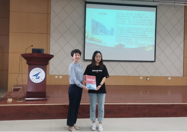 经验交流后,张梦予对此次培训课进行总结,号召同学们成为能够带动周围人积极向上、努力奋斗的优秀代表。党课结束后,乔书记为优秀党员代表陈紫蝶同学送上礼物,希望能够在以后的学习道路上不忘初心、砥砺前行。
