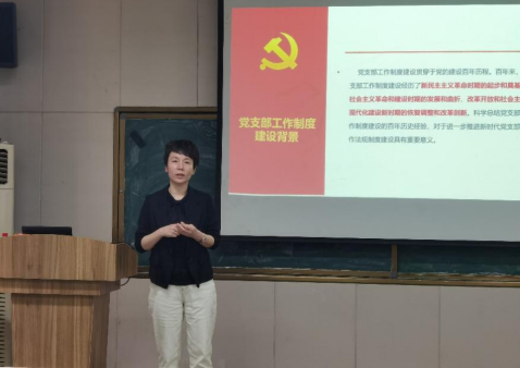培训会上,乔彩燕首先介绍了党支部工作制度建设背景,指出党支部工作制度建设贯穿于党建设的百年历程,科学总结党支部工作制度建设的百年历史经验,对于进一步推进新时代学生党支部工作法规制度建设具有重要意义。因此,要始终重视基层党组织建设,不断从制度层面改善党支部工作,加强党支部建设。此外,乔彩燕总结了新时代学生党支部的三大作用,一是加强党员的教育培养,提升学生党员政治素养和思想认识,二是加强党员的示范教育,发挥榜样、标杆作用,三是加强培养学生党员责任意识,强化党员服务职能。